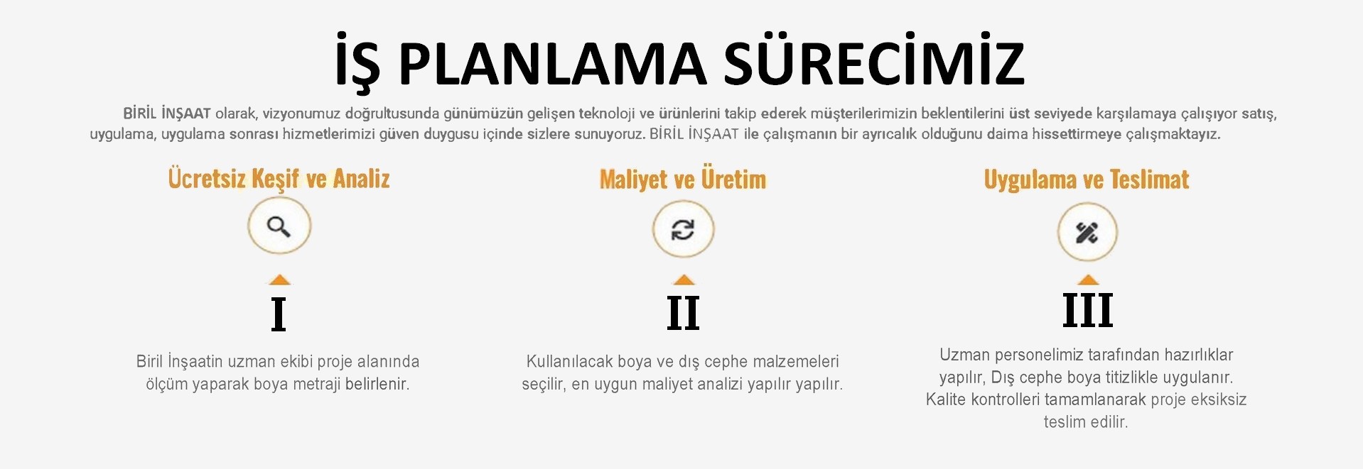 BİRİL İNŞAAT olarak, vizyonumuz doğrultusunda günümüzün gelişen teknoloji ve ürünlerini takip ederek müşterilerimizin beklentilerini üst seviyede karşılamaya çalışıyor satış, uygulama, uygulama sonrası hizmetlerimizi güven duygusu içinde sizlere sunuyoruz.